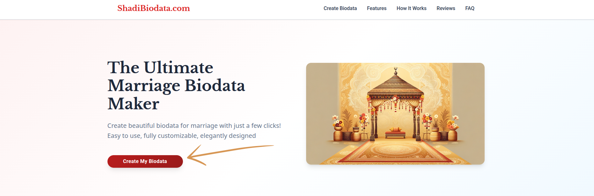 Head to the homepage and click the "Create My Biodata" button to begin a fresh session. No registration or sign-up is required — you can start building right away.