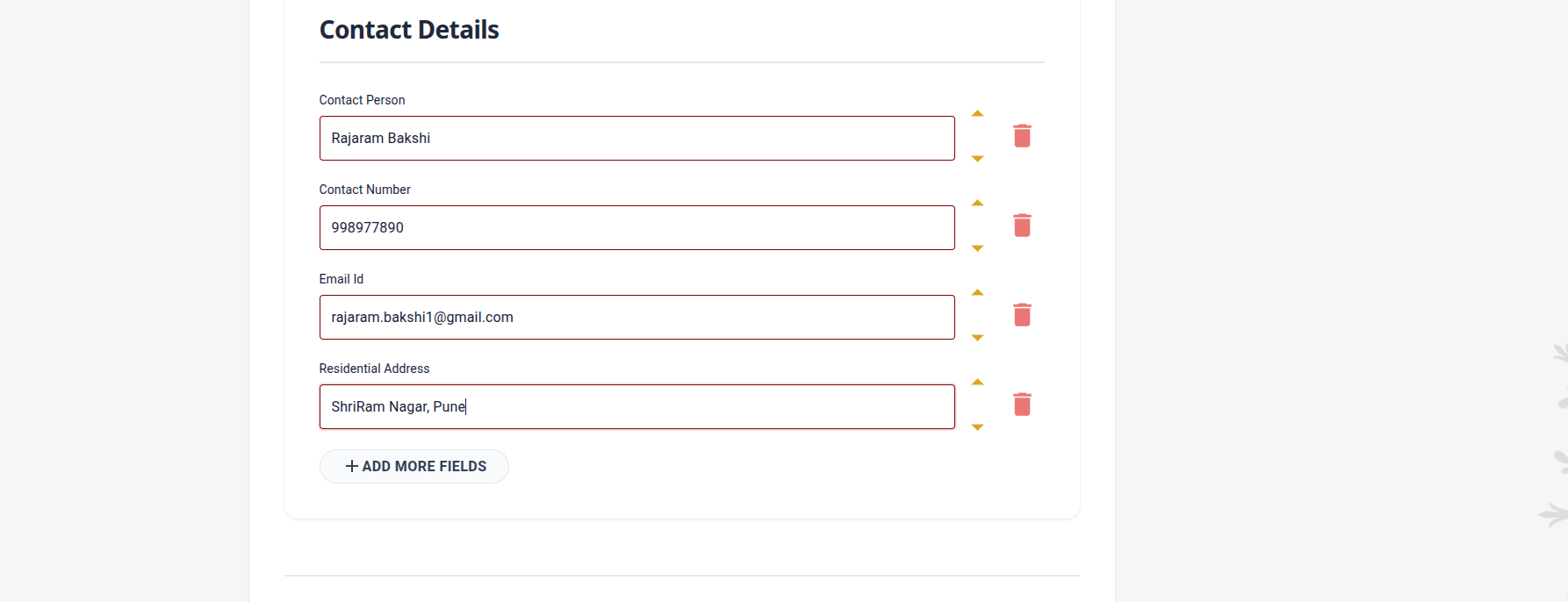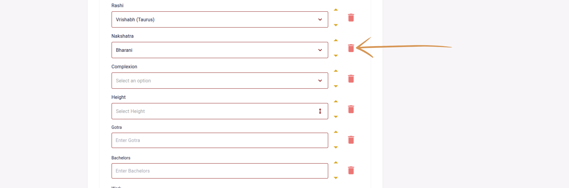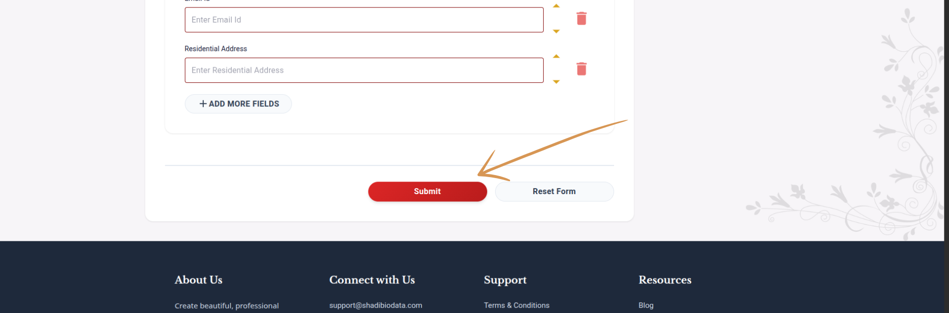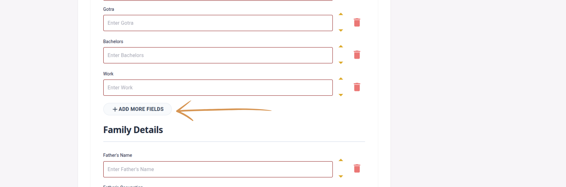 Need to include something not in the default form? Click "Add Field" to create a custom entry — such as hobbies, expectations, gotras, or anything else that is relevant to you.