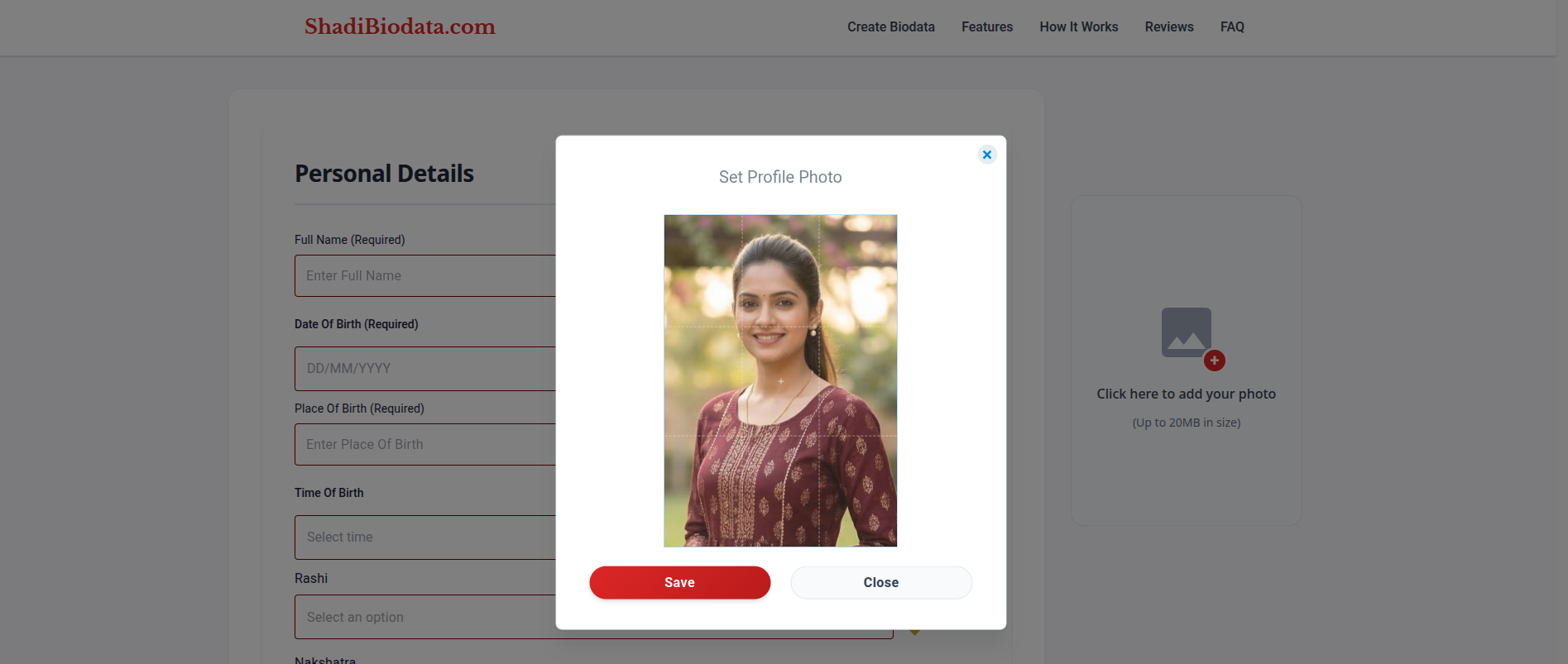Use the in-app cropping tool to frame your photo perfectly. You can zoom, pan, and adjust the crop area to get exactly the look you want before it appears on the biodata.