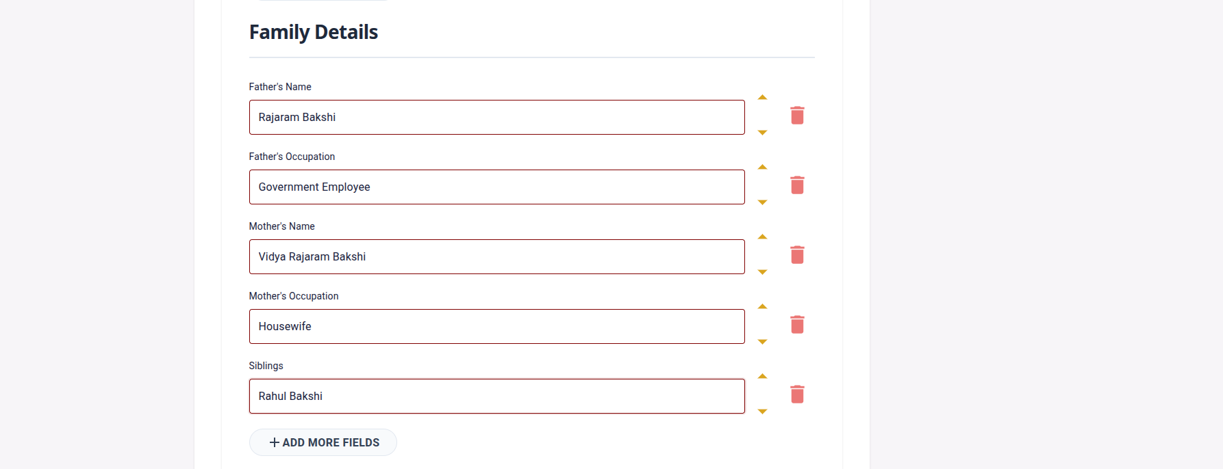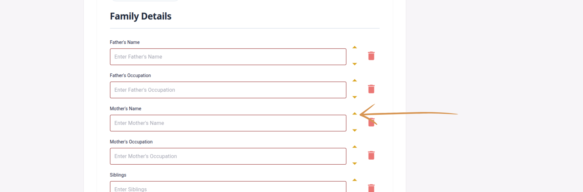Drag and drop Fields or Use Buttons to change their order. Want your Father's Name to appear before Mother's Name in personal info? No problem — arrange the biodata however you prefer.